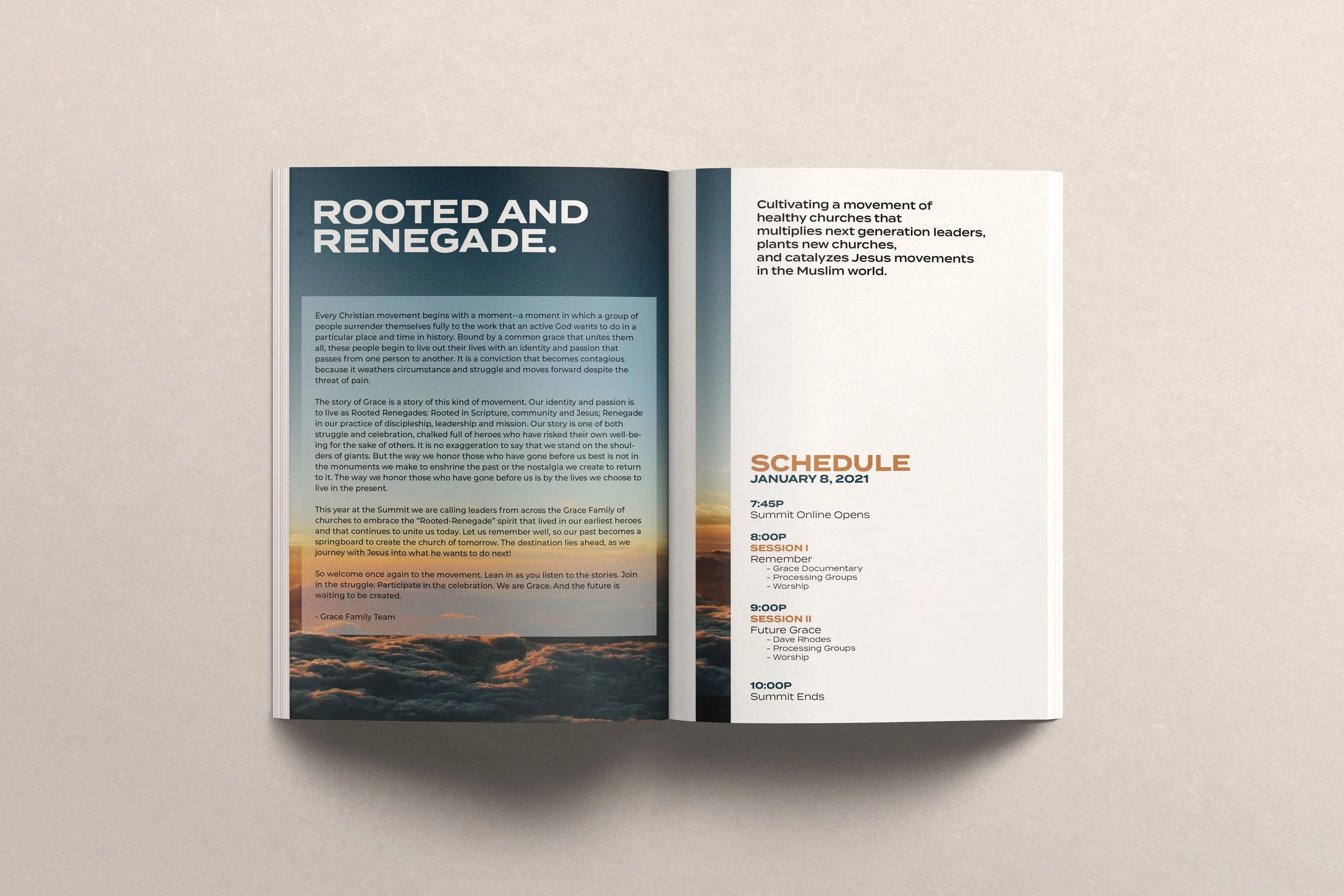 The branding for Summit usually has a very earthy, masculine approach, with subtle thematic changes each year. In 2021, the theme was Future Grace and therefore we worked to focus our imagery and design around a glowing, atmospheric style with connecting imagery that felt like the viewer could place themselves within the images.